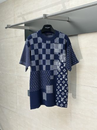 Louis Vuitton Damier Jacquard Short-Sleeved Gray Crewneck