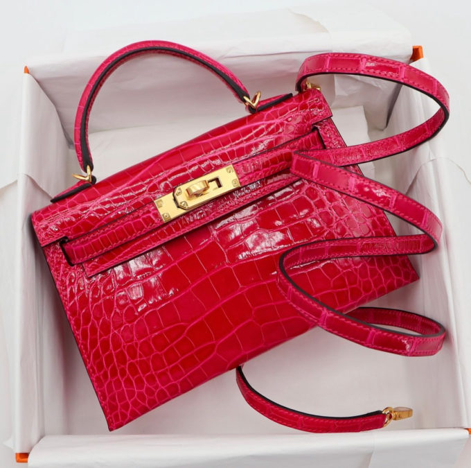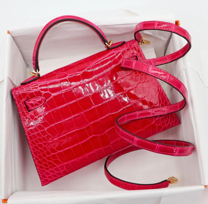 Hermes Mini Kelly Framboise Shiny Alligator Gold Hardware