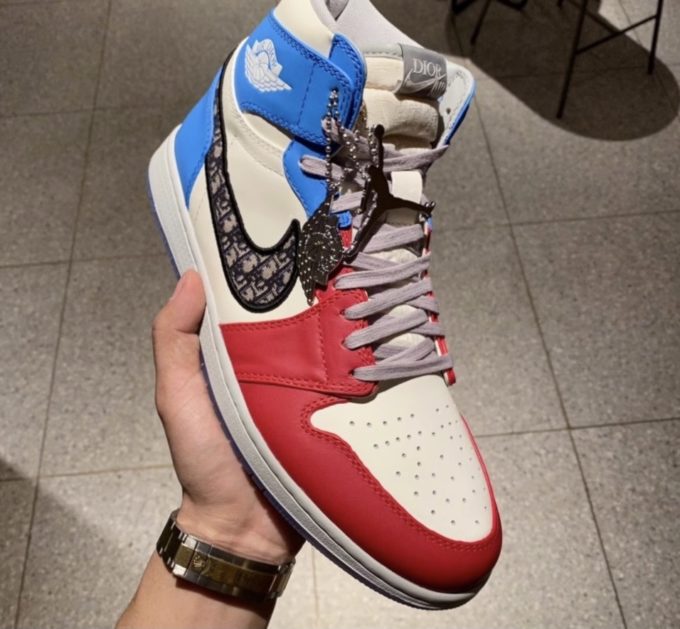Dior X Air Jordan High sneaker Red and blue
