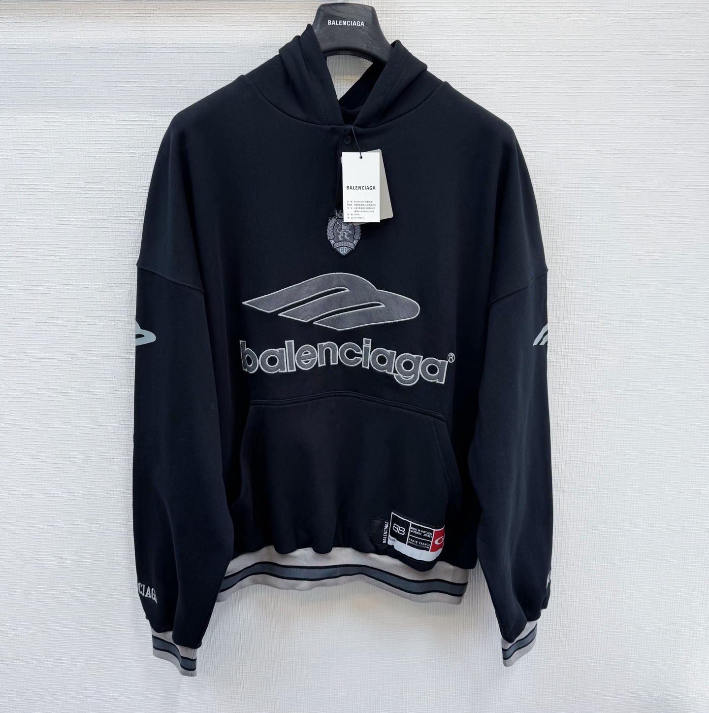 Balenciaga MEN'S 3B FOOTBALL POLO HOODIE IN BLACK/ANTHRACITE quantity