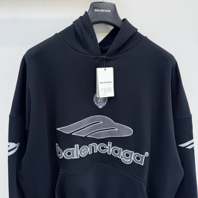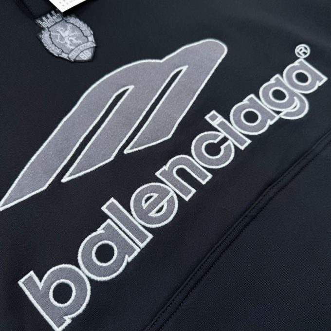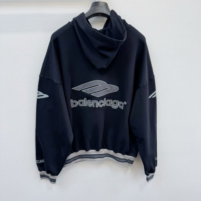 Balenciaga MEN’S 3B FOOTBALL POLO HOODIE IN BLACK/ANTHRACITE