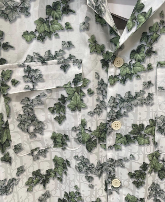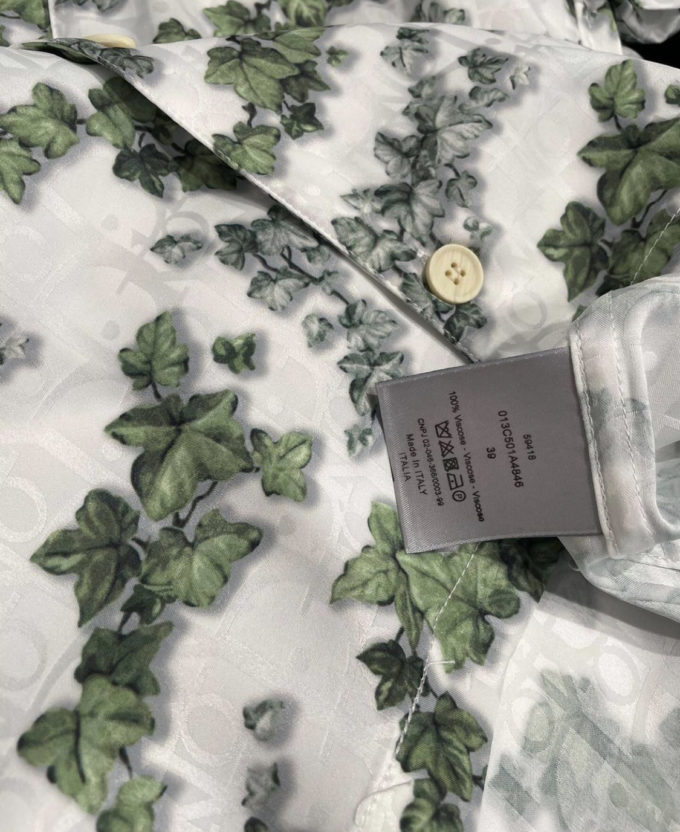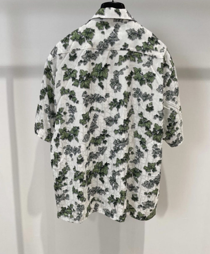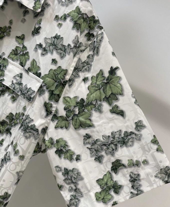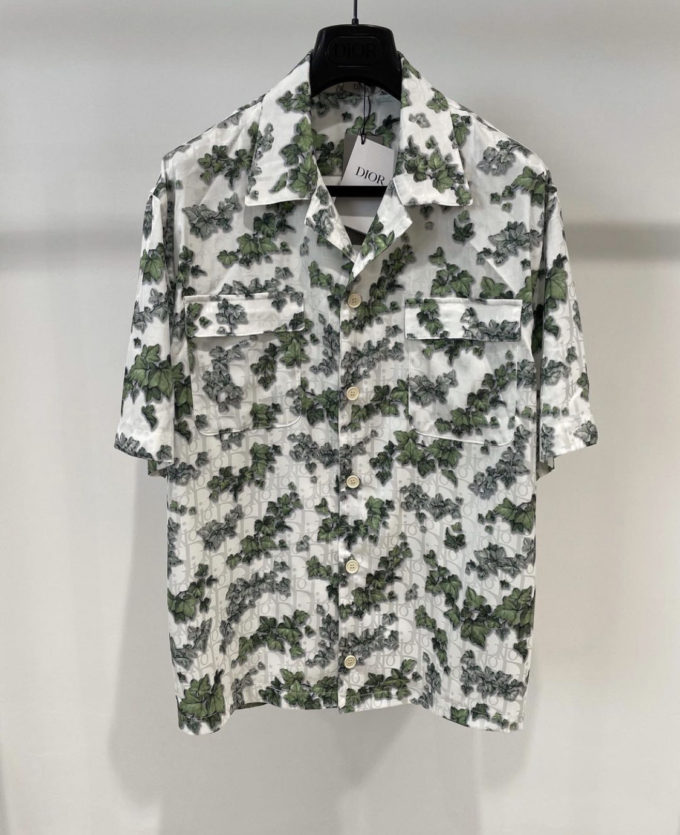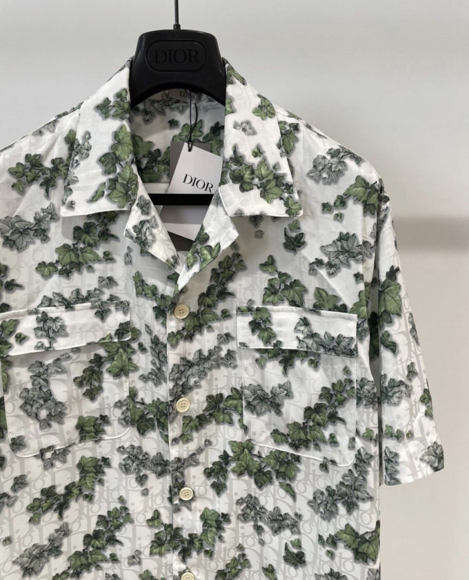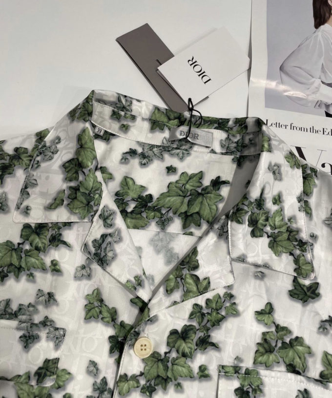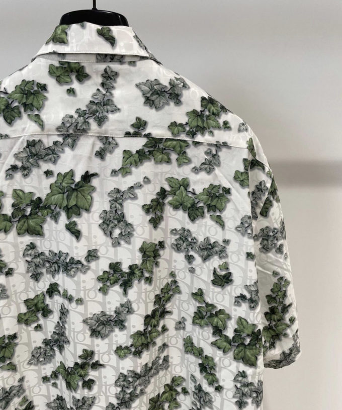 Dior White and Green Silk Twill and Cotton Shirt