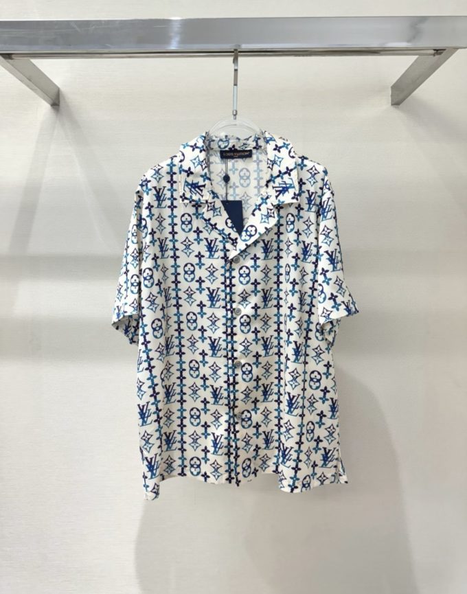 Louis Vuitton Monogram Printed Silk Short-Sleeved Shirt