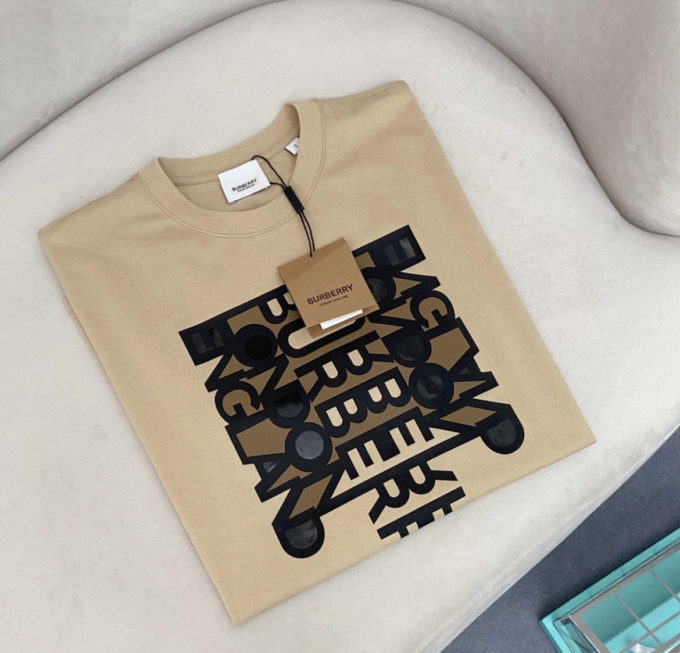 Burberry Beige Logo Print Cotton Oversized T-shirt