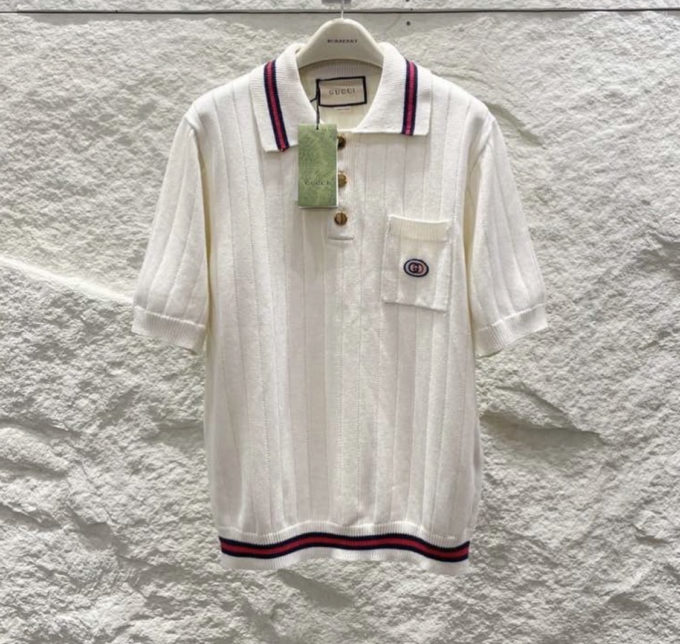 Gucci Cotton knit polo sweater with Web